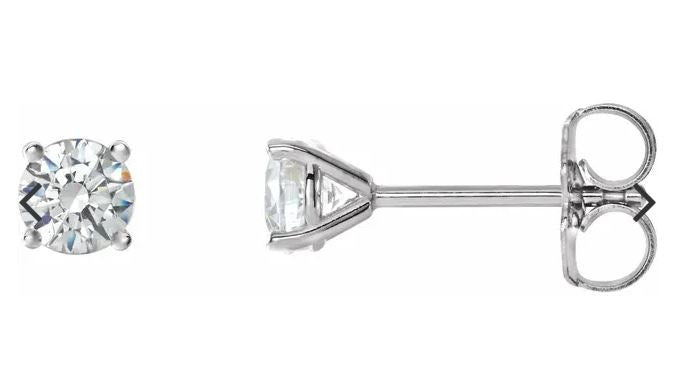 14 Karat White Gold 4 Prong "Martini" Set Round Brilliant Diamond Solitaire Stud Earrings
