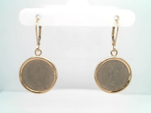 14 Karat Yellow Gold Bezel Set Maltese Coin Dangle Earrings With Leverbacks