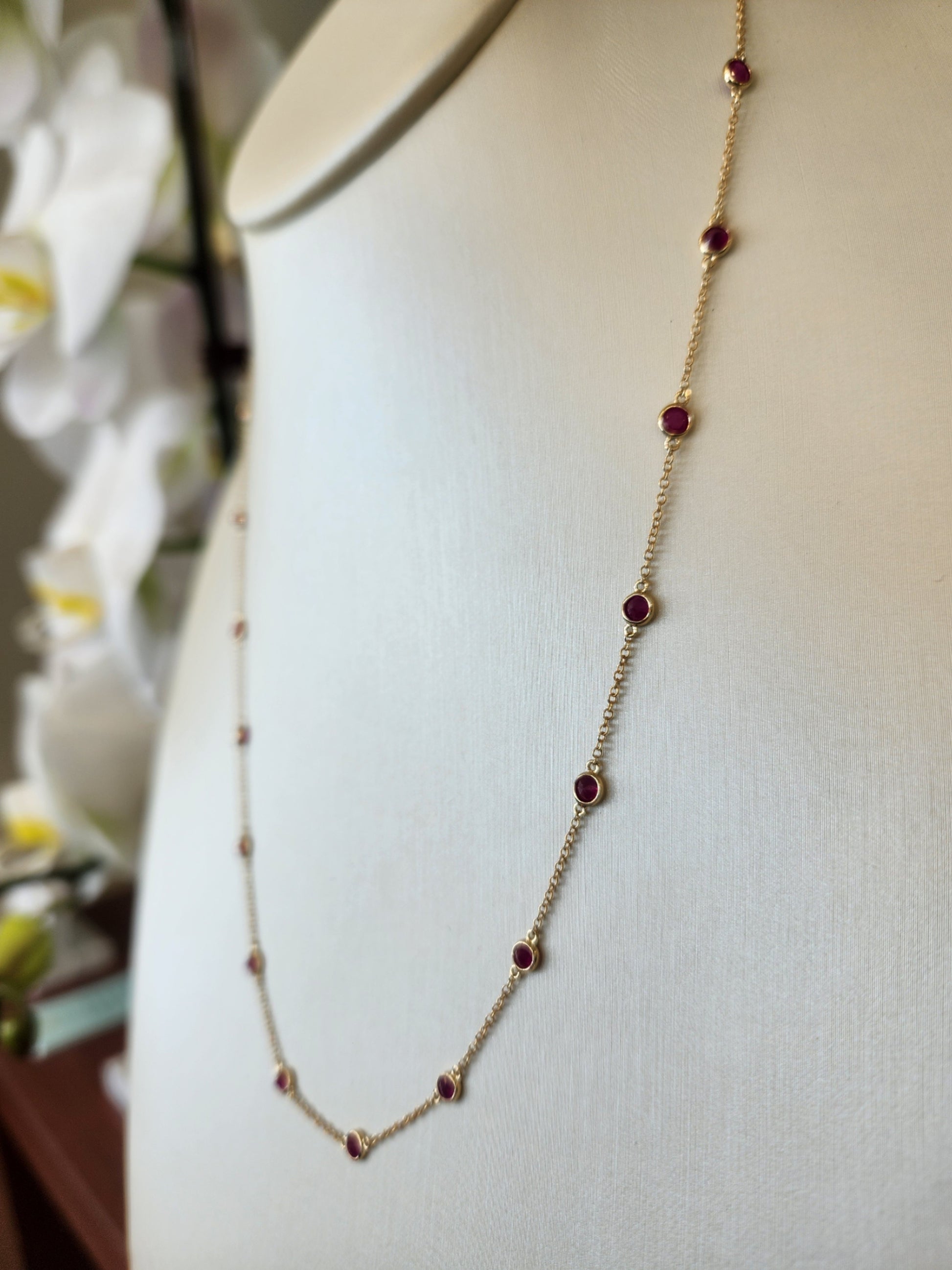 14 Karat Yellow Gold Bezel Set Ruby "By The Yard" Style Necklace 16-18"