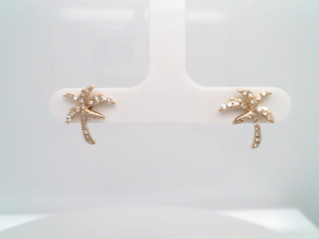 14 Karat Yellow Gold Diamond Palm Tree Stud Earrings