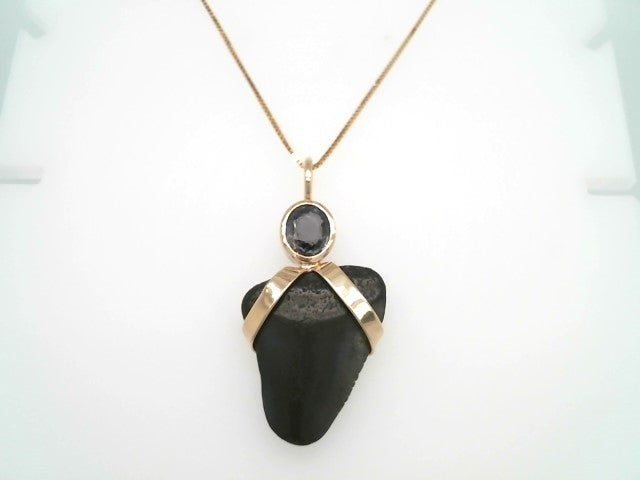 14 Karat Yellow Gold Small Florida Megalodon Shark's Tooth & Grey Spinel Amulet Pendant