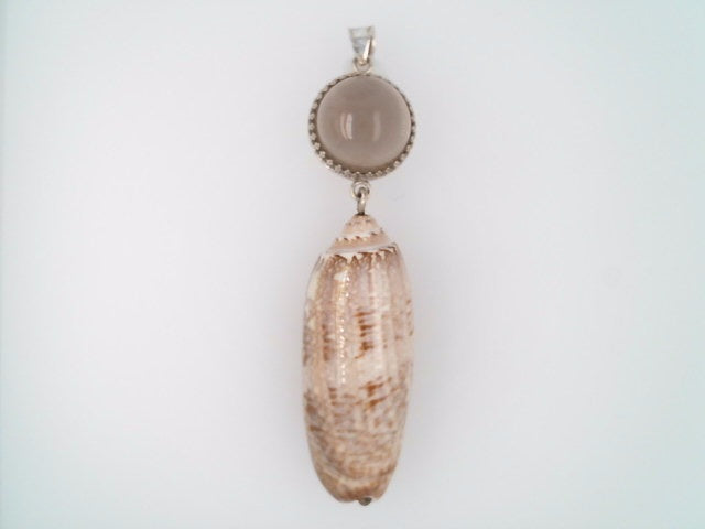 Sterling Silver Lettered Olive Shell & Smokey Quartz Pendant