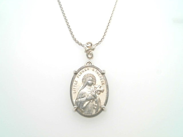 Sterling Silver Pendant With Floral Bail Set With Vintage St. Therese Italian Medallion