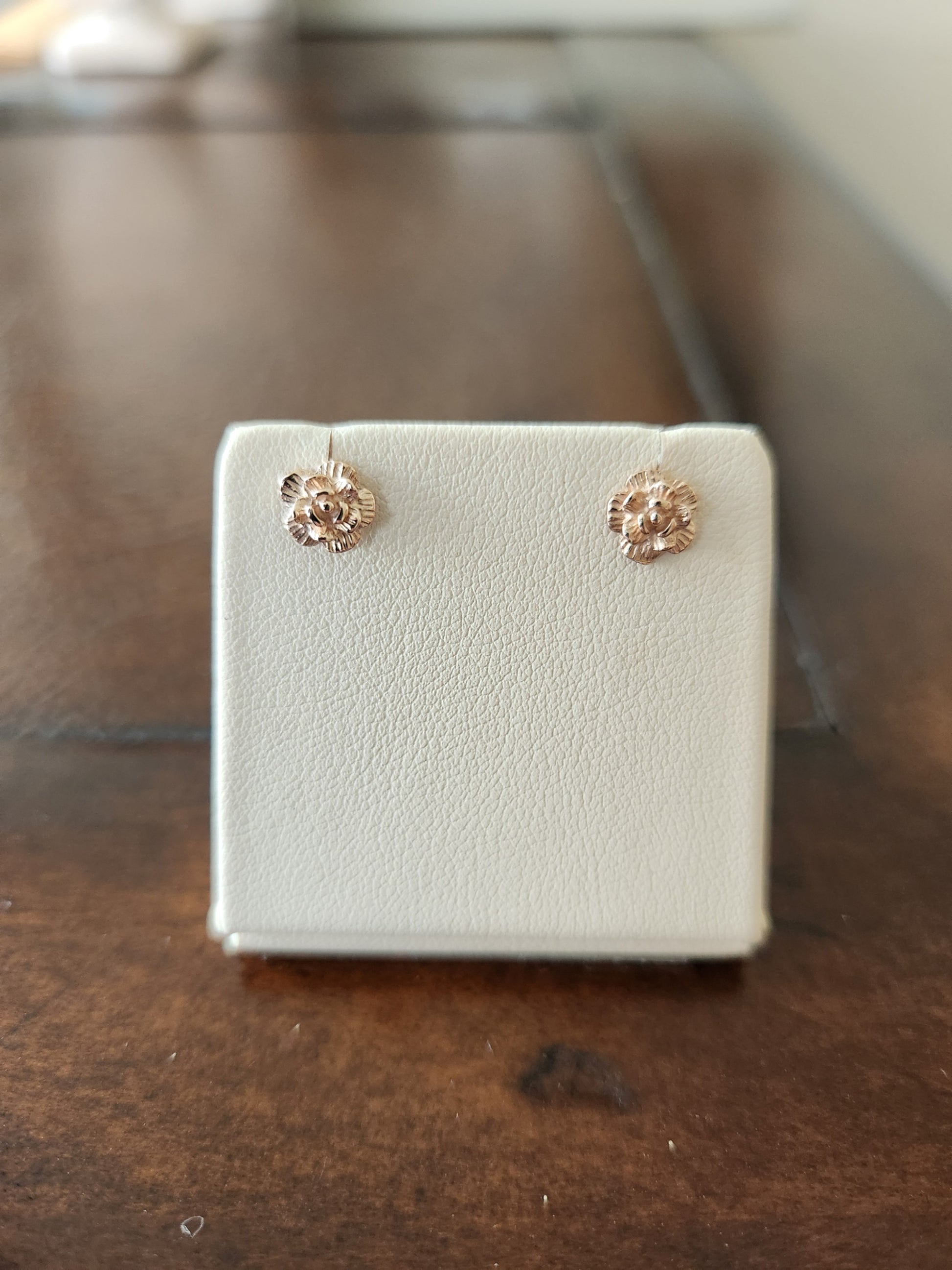 Vintage 14 Karat Rose & Yellow Gold 6.5 Mm Roses Stud Earrings