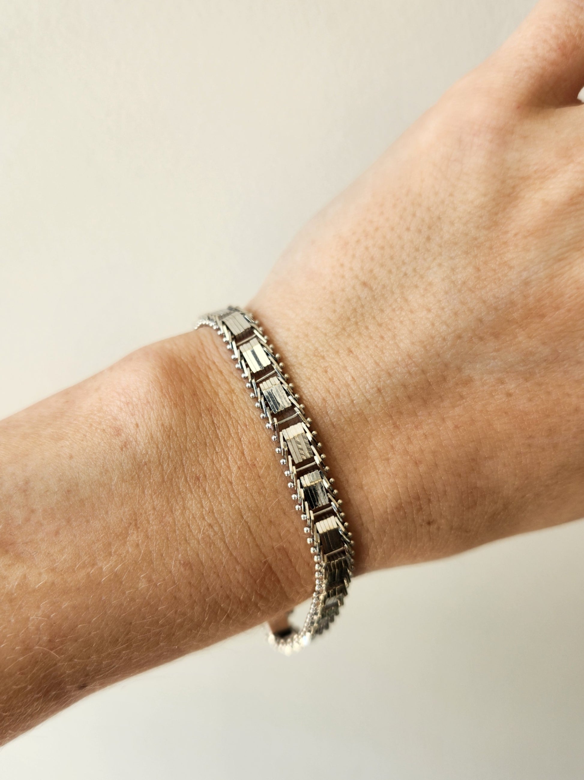 Vintage 14 Karat White Gold 7 Mm Fancy Link Bracelet, 6.75"