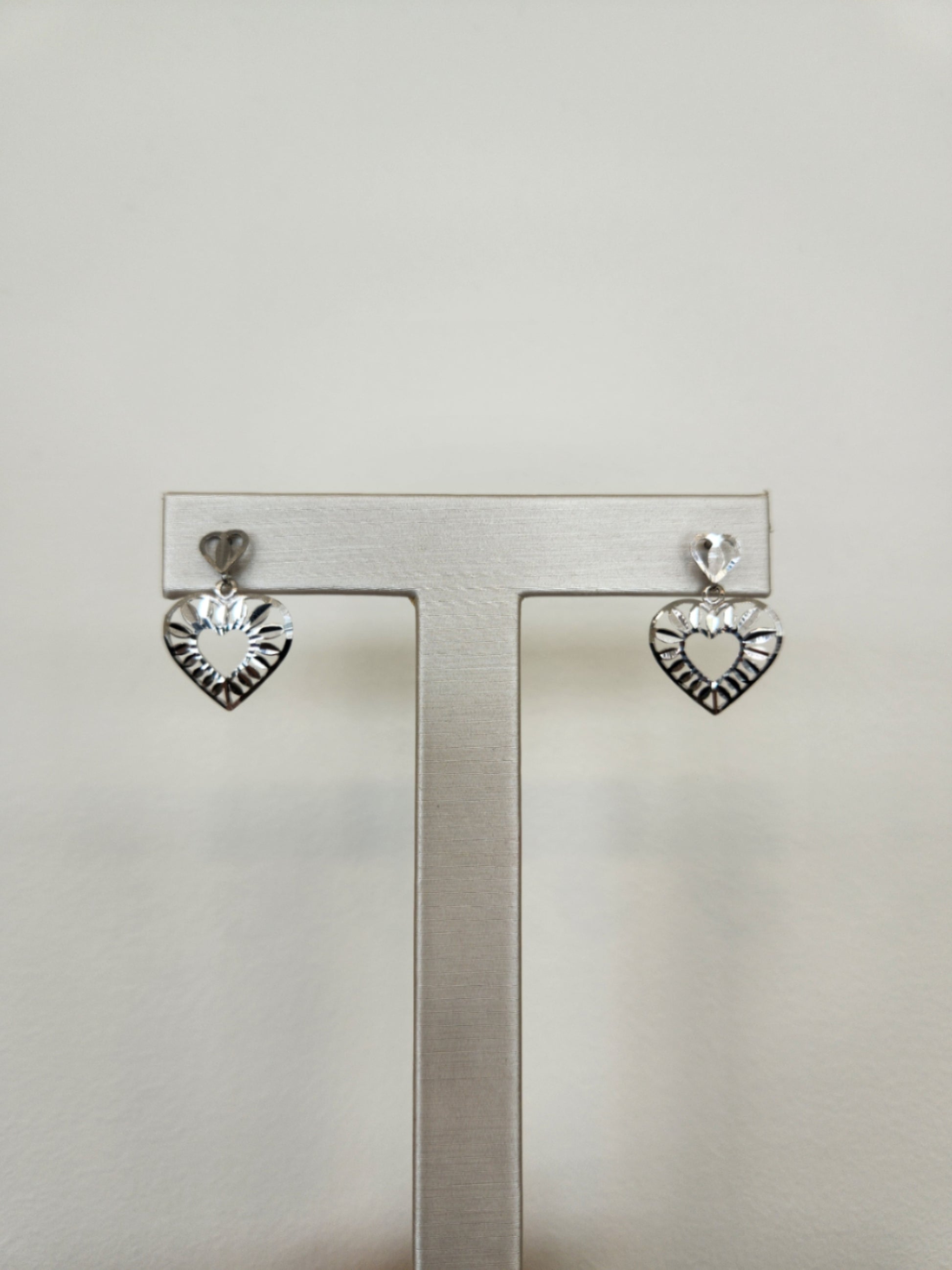 Vintage 14 Karat White Gold Diamond Cut Heart Dangle Earrings