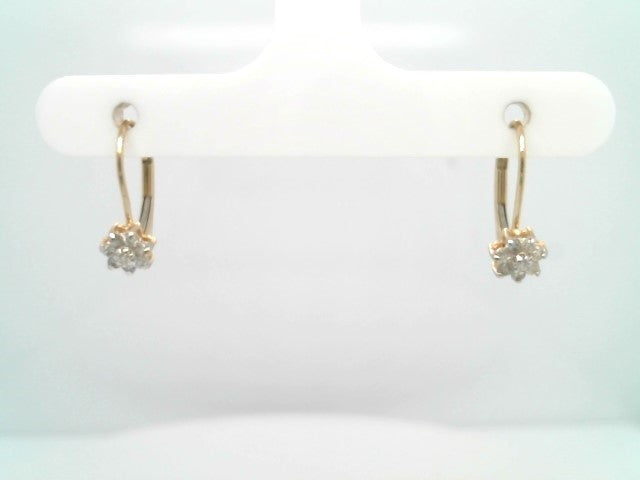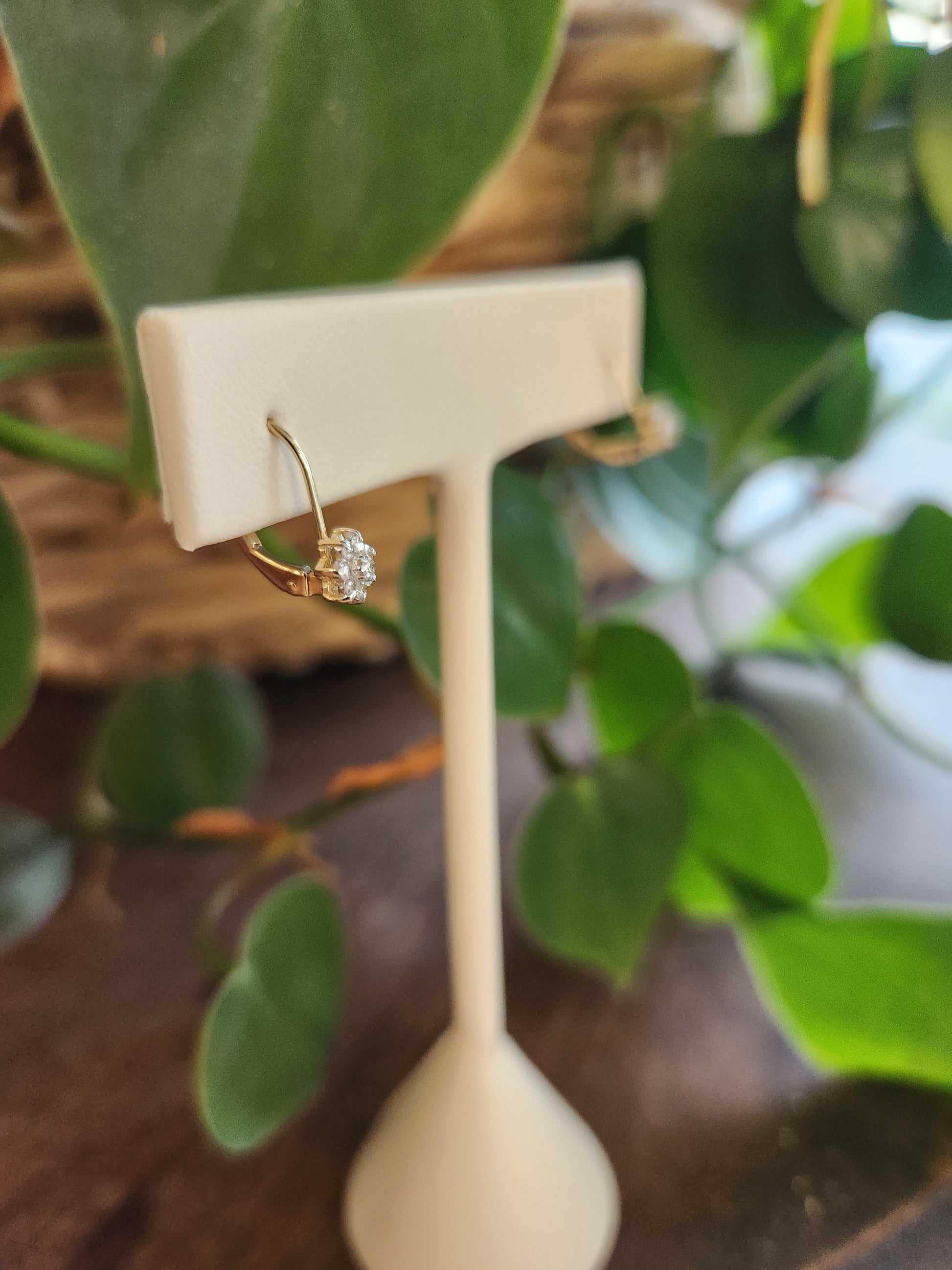 Vintage 14 Karat Yellow Gold Diamond Cluster Leverback Earrings