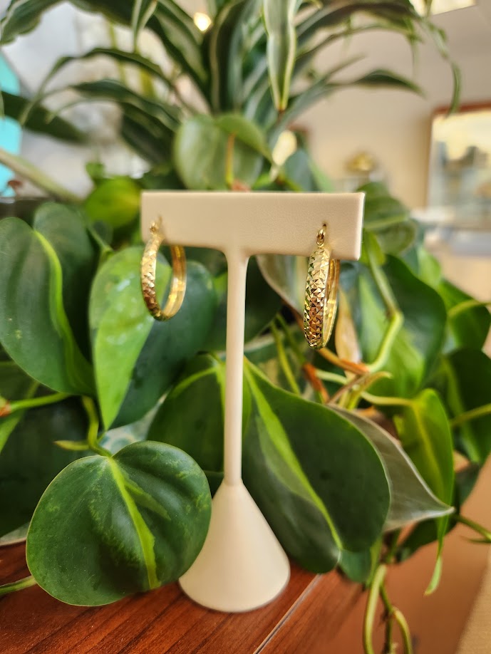 Vintage 14 Karat Yellow Gold Diamond Cut Hoop Earrings