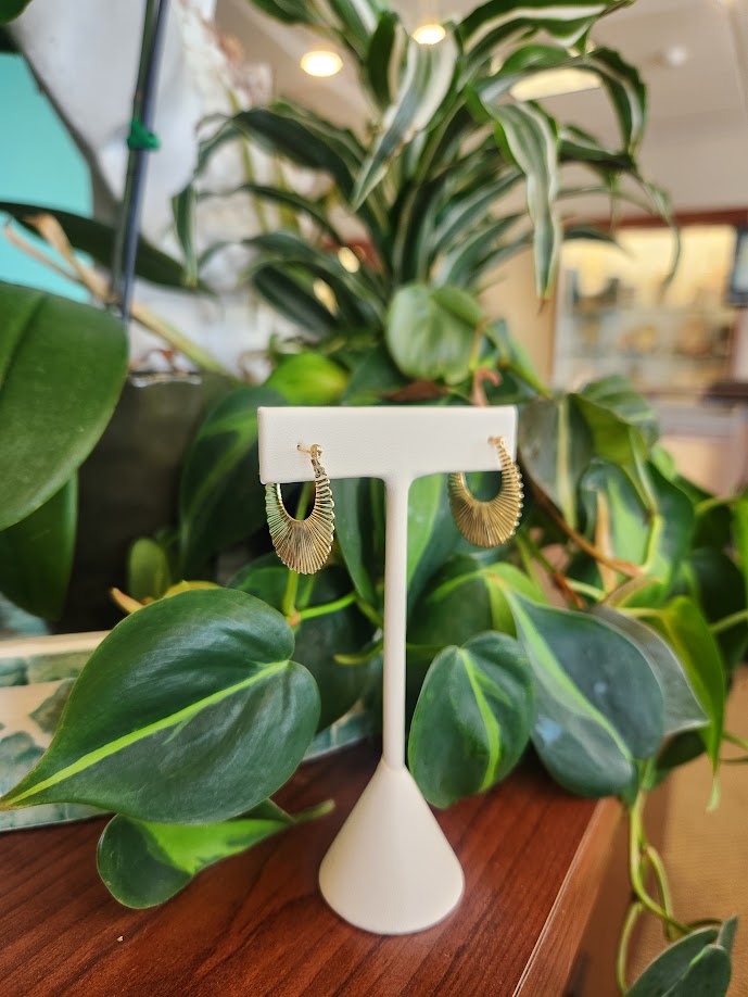 Vintage 14 Karat Yellow Gold Flat Ribbed Hoop Earrings