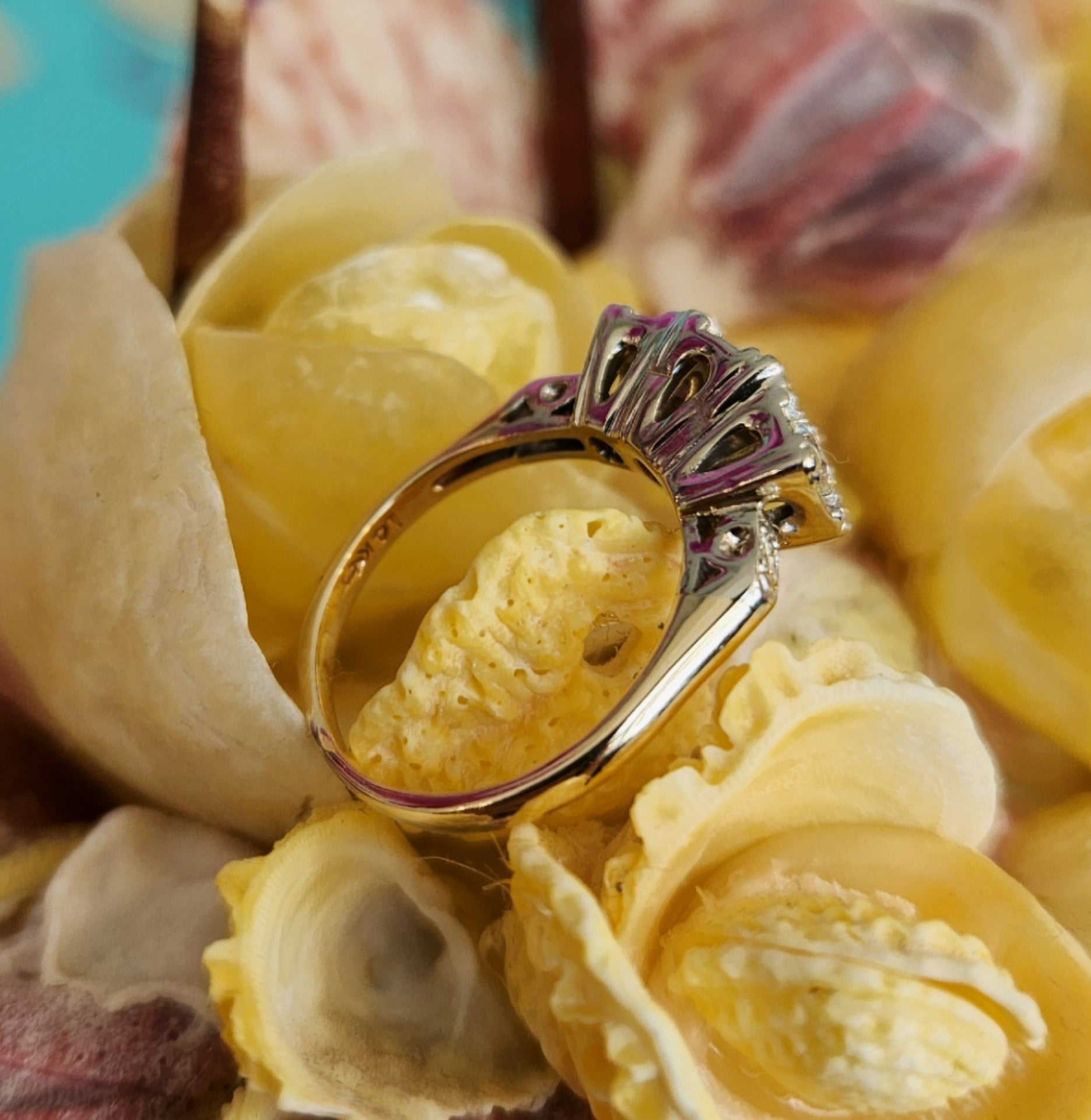 Vintage 14 Karat Yellow & White Gold Illusion Top 5 Stone Diamond Ring