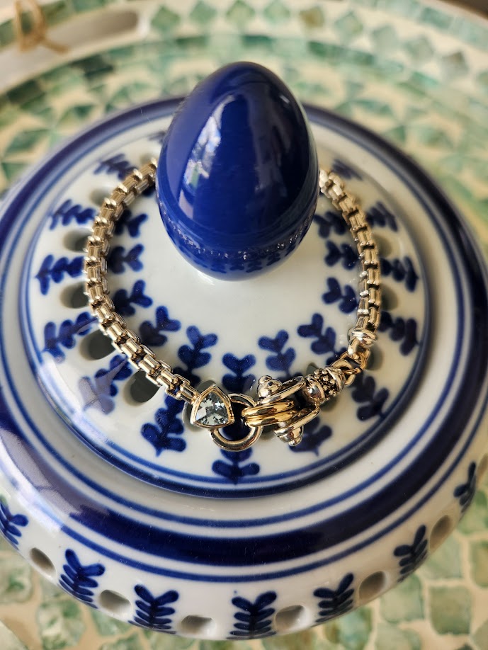 Vintage Sterling Silver/14 Karat Yellow Gold Bracelet With Blue Topaz Accent, 7.25"