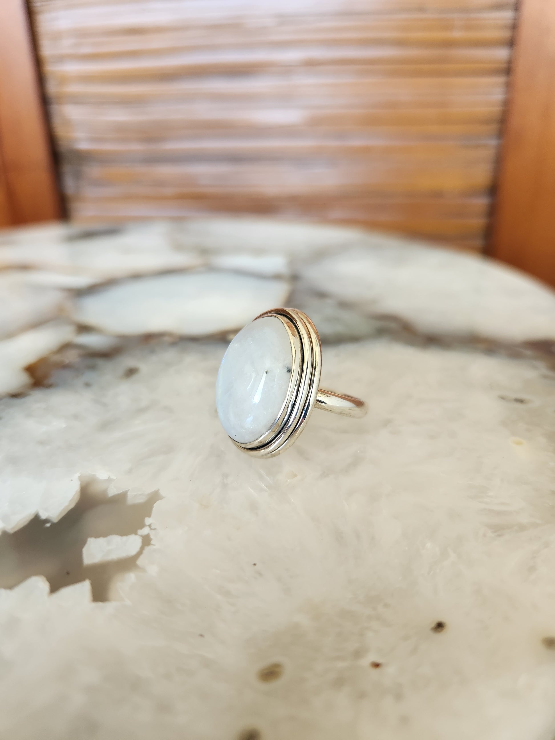 Vintage Sterling Silver Bezel Set Cabochon Moonstone Solitaire Ring